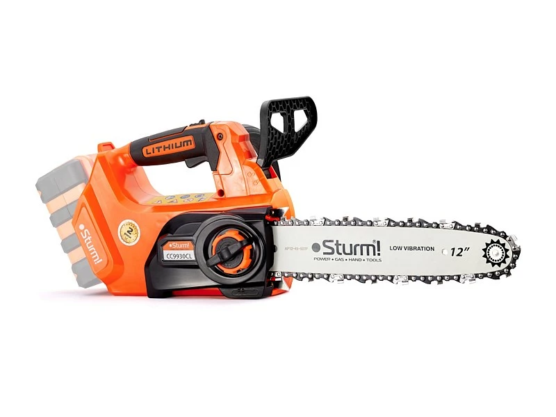 Цепная пила работает от аккумуляторной батареи Sturm CL203B (в комплект не входит), которую можно использовать с другими устройствами из линейки Sturm 36В.