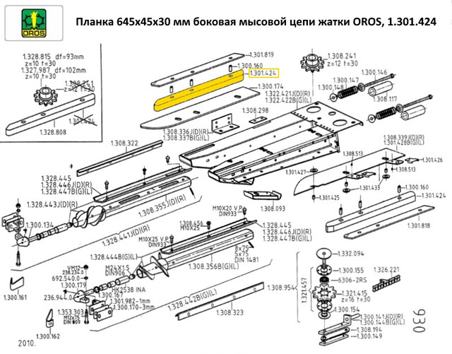 Планка 645х45х30 мм боковая мысовой цепи жатки OROS, 1.301.424