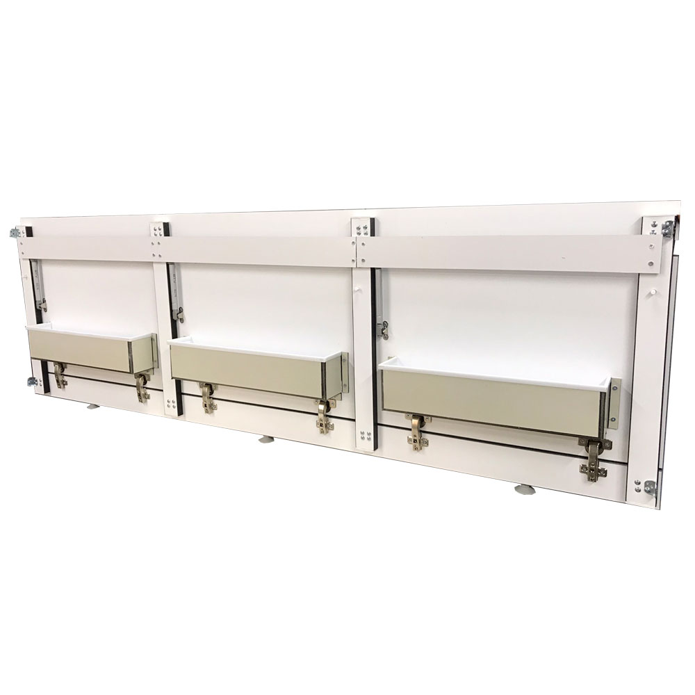 По многочисленным просьбам наших клиентов мы разработали экран под ванну с откидными дверцами. Экран под ванну Креатив сделан полностью из пластика что позволяет эксплуатировать в условиях повышенной влажности. Функционально экран может иметь 2 или 3 откидных дверцы, так же может быть изготовлена и торцевая часть по ширине ванной. Внутри стоят корзины высотой 13 см и глубиной 10 см в которых можно хранить все необходимые вещи. Экран легко устанавливается на 4-ох выкручивающихся ножках, установочная высота которого 52-56 см. Так же экран может быть изготовлен и без ножек.