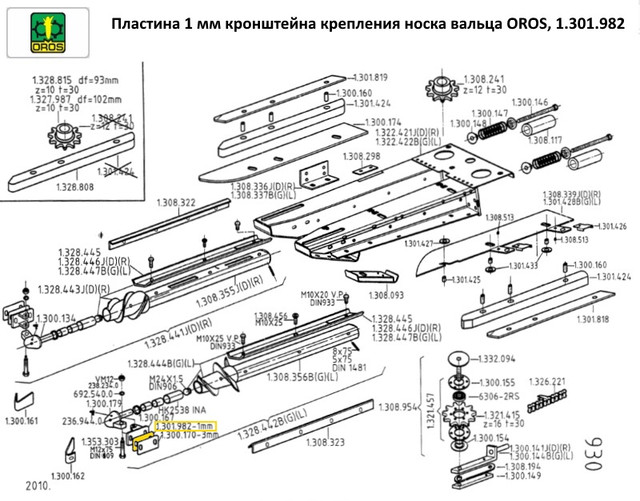 1.328.447 . . . . . . . планка вальца левая (жатка OROS)