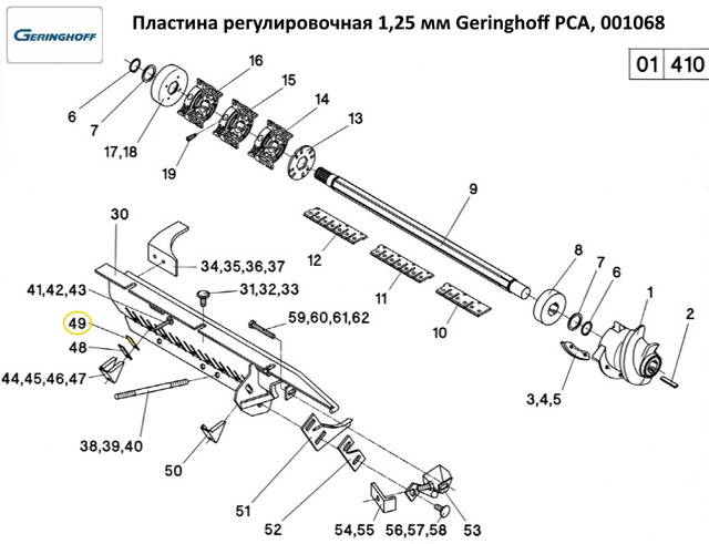 Пластина регулировочная 1,25 мм Geringhoff PCA, 001068