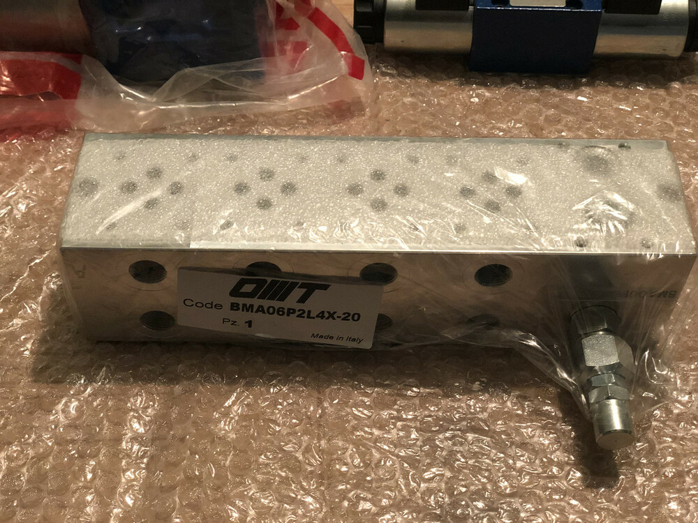 Высококачественная переходная (монтажная) плита BMA06P2L1X-20 на 1 секцию со встроенным клапаном давления производства OMT, Италия с условным проходом 6 мм Cetop 3, подходят для импортных, а так же отечественных гидрораспределителей Ду=6мм, таких как РХ06, ВЕ6, РЕ6.3 , 1РЕ6, РХ6, ПЕ6. Максимальное давление - 300 Бар, максимальная подача масла - 40 л/мин.