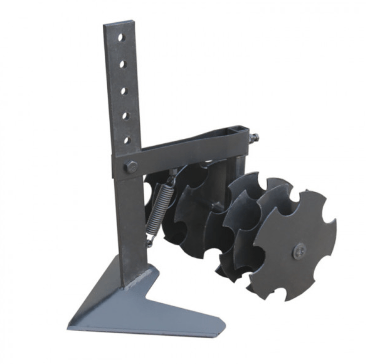 Конструкция плоскореза-рыхлителя продумана до мелочей. Основа изделия – это сварная конструкция, состоящая из двух остро заточенных ножей (левого и правого), прочной стойки и комплекта дисковых борон. Рабочая ширина инструмента составляет 340 мм – этого достаточно для качественной обработки междурядий, уменьшения сорняков и улучшения аэрации почвы. Толщина ножей – 4 мм, благодаря чему они сохраняют остроту даже при интенсивном использовании и не деформируются под нагрузкой.