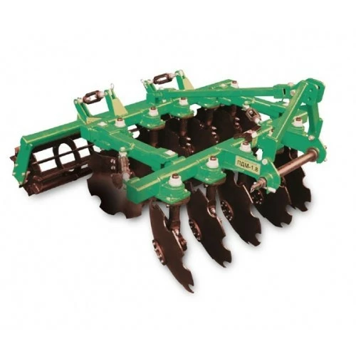 Плуги дисковые, бороны навесные серии ПДМ предназначены для подготовки почв, не засоренных плитняком и другими препятствиями, под посев зерновых и технических культур путем рыхления поверхности поля на заданную глубину с удельным сопротивлением почвы до 0,9 кг/см2, твердостью 35 кгс/см2 и влажностью до 27%. С регулируемым междуследием. За один проход агрегат производит измельчение и заделку растительных остатков, крошение и выравнивание поверхности поля, заделывает внесенные удобрения.