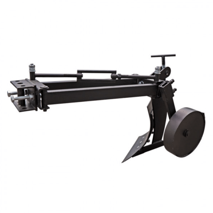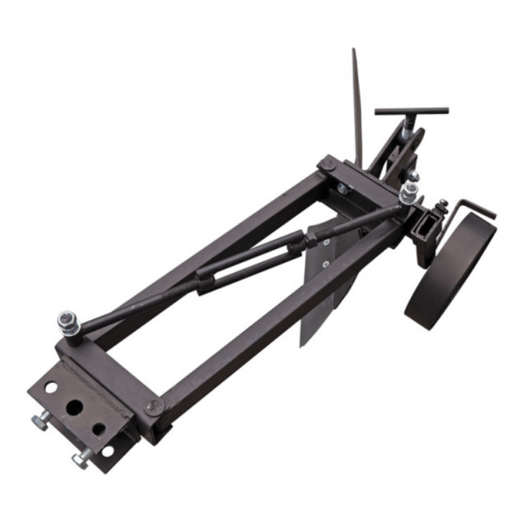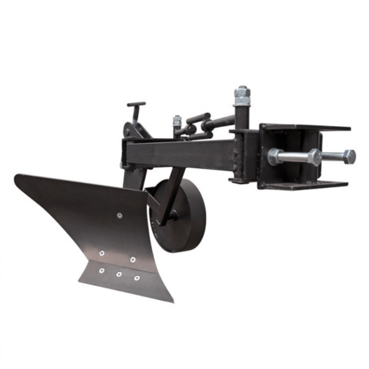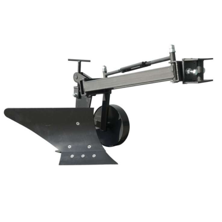 Конструкция плуга базируется на удлиненной крепкой раме с подвижным параллелограммом. Такая система позволяет легко смещать корпус плуга по отношению к оси мотоблока без изменения его углового положения. Это значительно улучшает управляемость техники во время пахоты и обеспечивает точную работу по борозде. Положение корпуса в поперечной плоскости можно регулировать с помощью специальных пазов в задней части рамы.