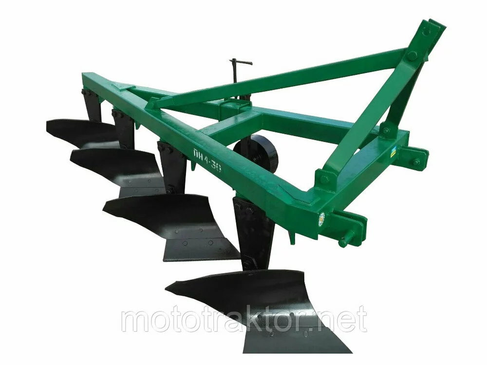 ПН-4-30 Украинского производства имеет 4 корпуса с общей шириной вспашки в 1200мм, углубиться данный плуг способен на 300мм, вес составляет 200кг.