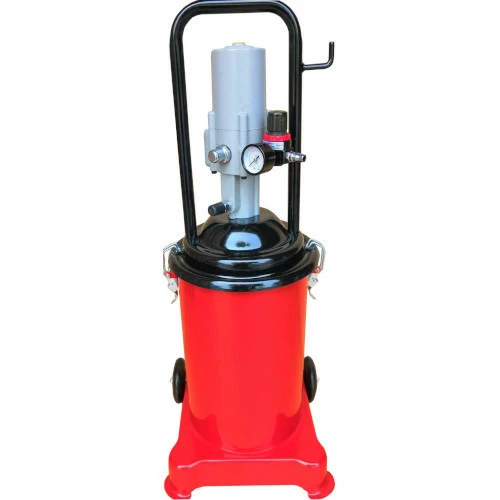 Применяется для нагнетания вязкого масла и других пластичных изделий таких как литол, солидол, циатим в местах трения деталей. Емкость пневматического нагнетателя может вместить в резервуар 12 л смазки, а ее нагнетание происходит благодаря мощному пневматическому приводу. Давление воздуха для откачки вакуумом составляет 30 мПа, а давление воздуха для слива масла от 0 до 0,7 мПа. Аппарат имеет удобные в компактном применении габаритные размеры и небольшой вес в 17кг. А колёса, которыми оснащён нагнетатель смазки, позволяют без всякого малейшего труда транспортировать его по помещению большой автомастерской или СТО.