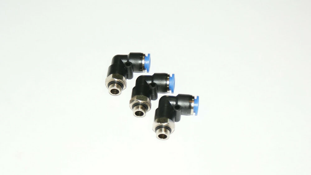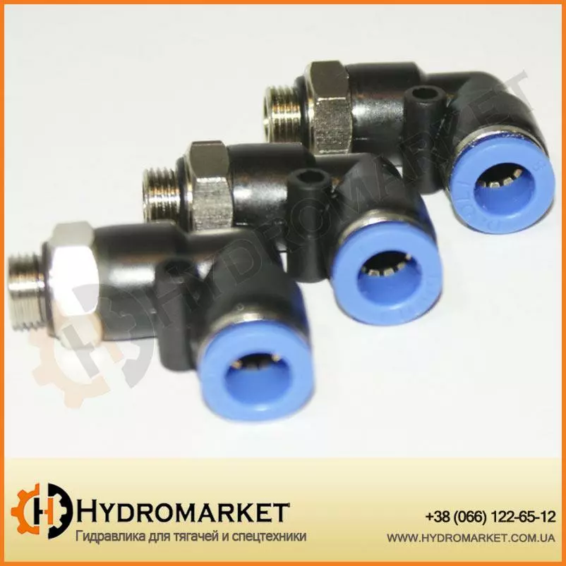 Пневматический уголок 90% с наружной резьбой. В наличии пневматические соединения разных размеров: