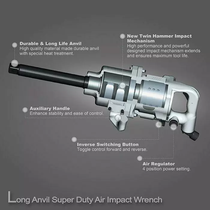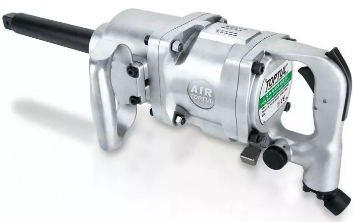 Пневмогайковерт TOPTUL KAAB3225 (удлиненный шпиндель) 1" принадлежит к классу мощных ударных пневматических инструментов. Корпус гайковерта выполнен из композитного материала и весит 16.8кг. Пневмогайковерт выполнен с двумя ручками для простоты управления. А так же для комфортной работы и безопасности мастера кнопка пуска спрятана во внутреннюю часть рукоятки. Максимальное усилие создаваемое пневматическим гайковертом составляет 3390 Н/м,