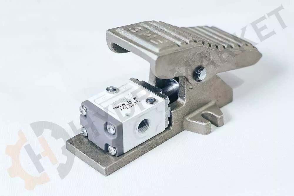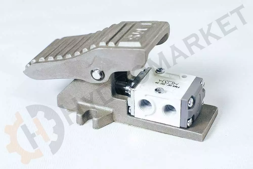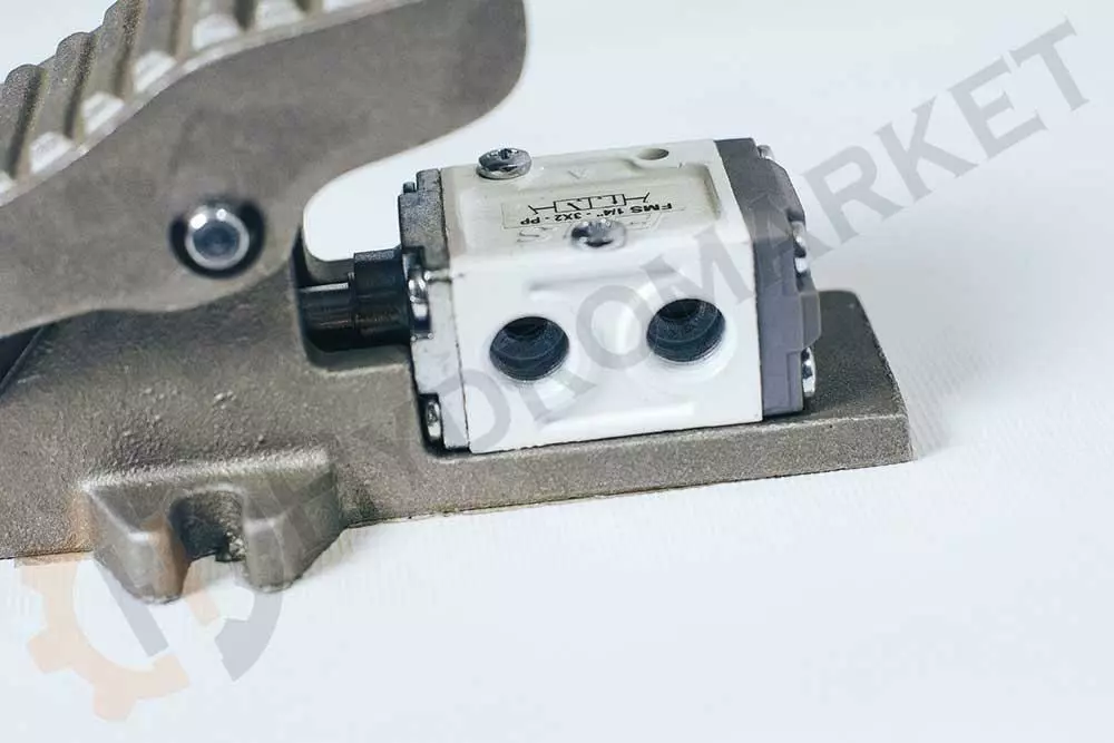 Функции  как у  свич на 1 клавишу.  Нажатие на педаль - пошел воздух, заработала ком, насос начал качать масло. Повторное нажатие - перекрылся воздух, ком отключилась, насос перестал качать. Отверстия под нипель 1/4". Всего нипелей 3 штуки в комплект. Крепится за 2 уха.
