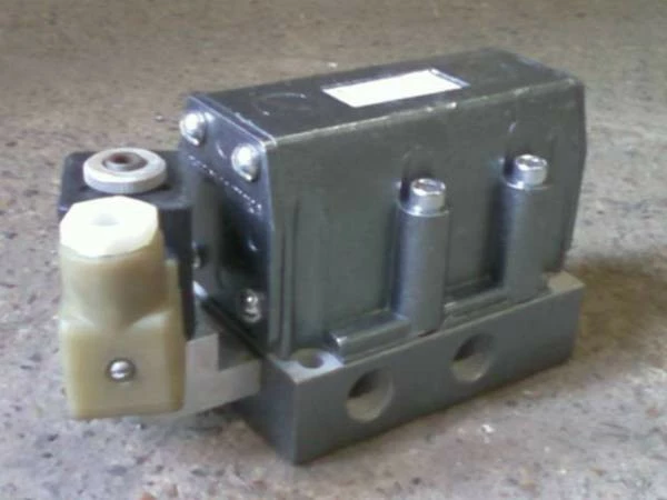 Распределение потоков сжатого воздуха осуществляется парой плоский золотник-плита. Золотник, перемещаясь электромагнитом, перекрывает попарно сообщающиеся между собой отверстия, которые выведены на плоскую поверхность плиты и соединены с резьбовыми отверстиями для присоединения пневмолиний. Герметичность рабочих каналов достигается использованием специальных резиновых уплотнительных колец вложенных в отверстия в плите.