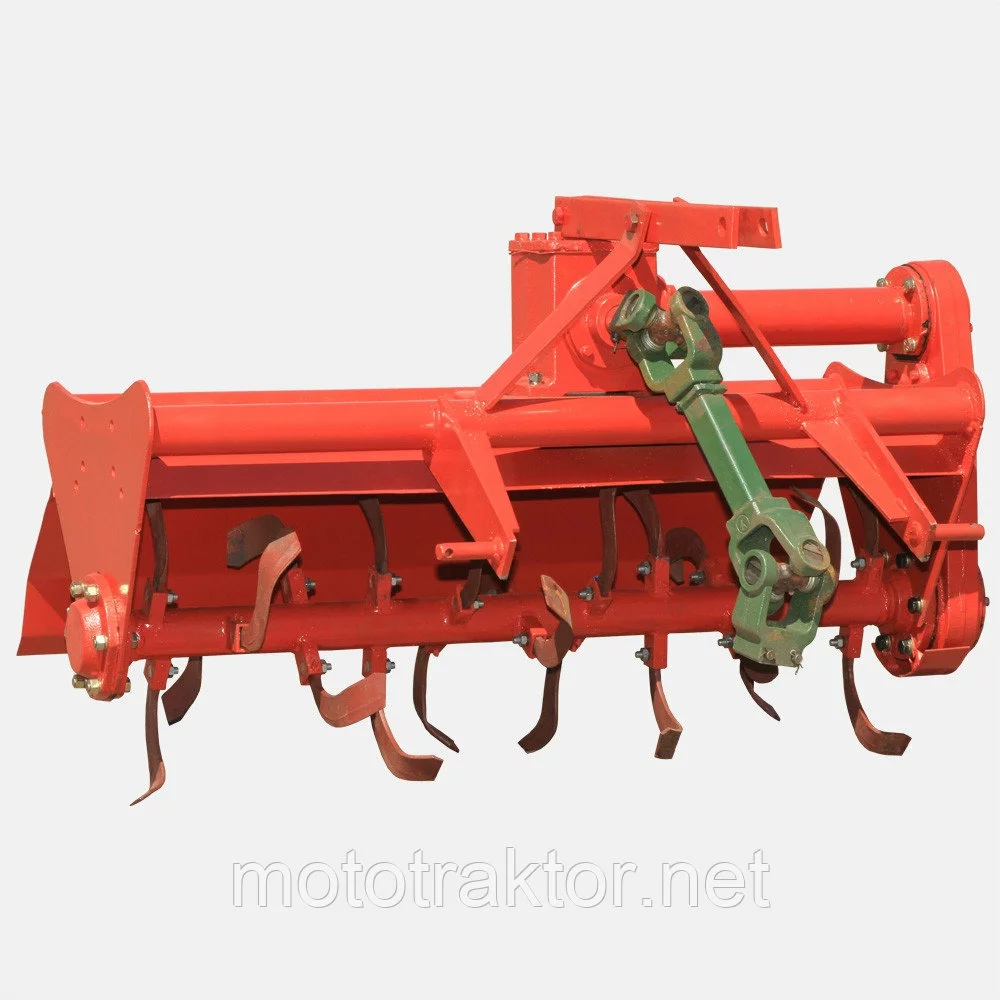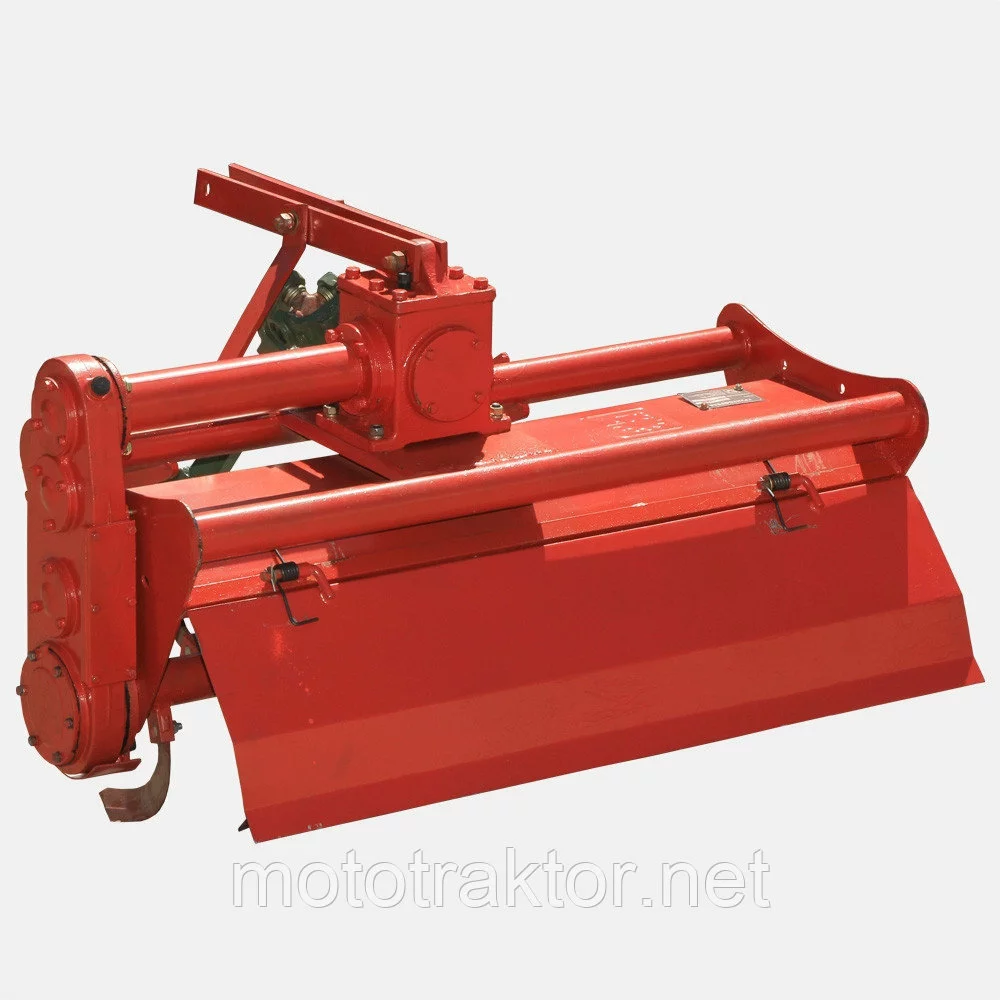 Почвофреза представляет собой согнутые ножи, закрепленные в определенном порядке на вращающимся валу, со скоростью приблизитнльно 200 об/мин. Навешивается на трехточечный навесной механизм сзади трактора. Работает от вала отбора мощности (ВОМ) трактора. Рекомендуется выбирать фрезу немного меньшую рекомендованной под конкретный трактор. Фреза даёт более лучший результат при увеличении скорости движения во время работы.