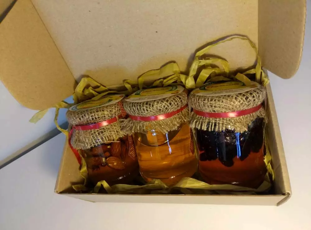 Компанія «ЕКО-Медок» підготувала для Вас Медову коробку з Липовим медом, Медом з фундуком та Медом з мигдалем.