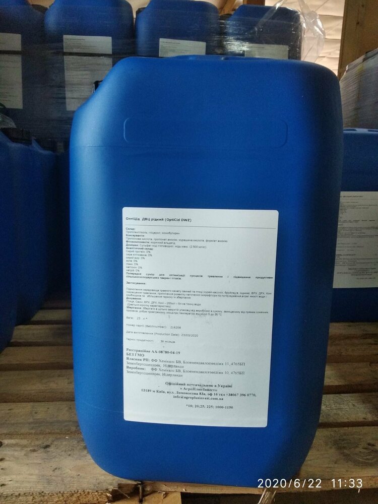 Подкислитель воды антибактериальный для птицы и животных ОптиЦид ДВЦ-жидкий, 25 кг
