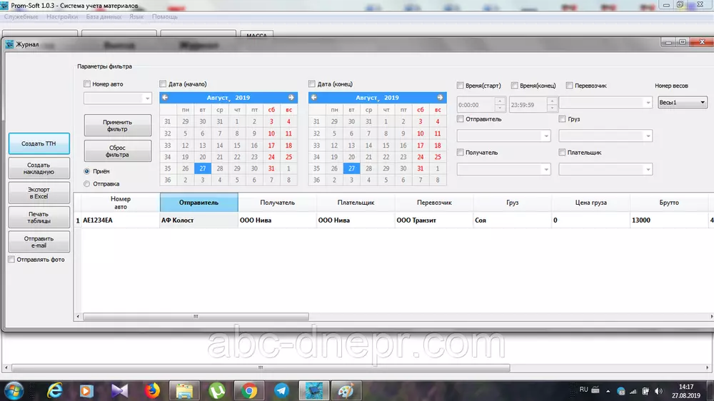 Программное обеспечение для автомобильных весов, позволяет вести учет приемки-отгрузки продукции, сортировать и анализировать данные