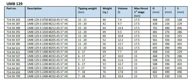 | 71404709 | UMB 129-5-2480-K192-45-½“-HC | 81 | 7 - 18 |