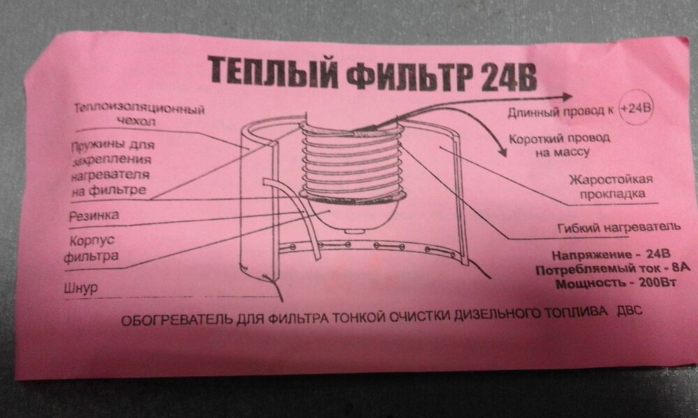 Подогрев топливного фильтра 24 вольт