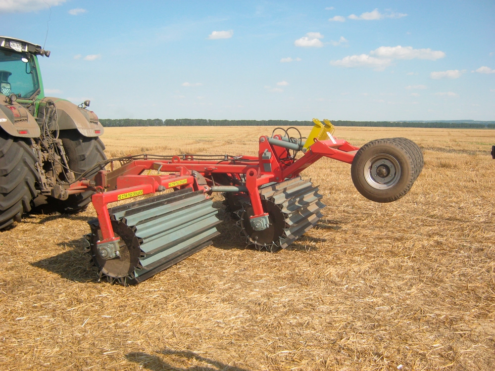 При русі катка ПРС-6 барабани обертаються, ножі легко врізаються в поверхневий шар ґрунту, стебла підминаються до землі, шинкують і дрібна фракція розкидається по поверхні.