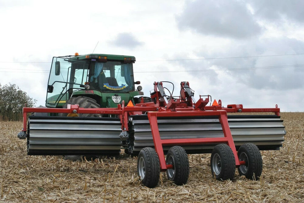 Каток-подрібнювач складається з рами, барабанів з ножами, транспортних коліс і гідросистеми трактора.