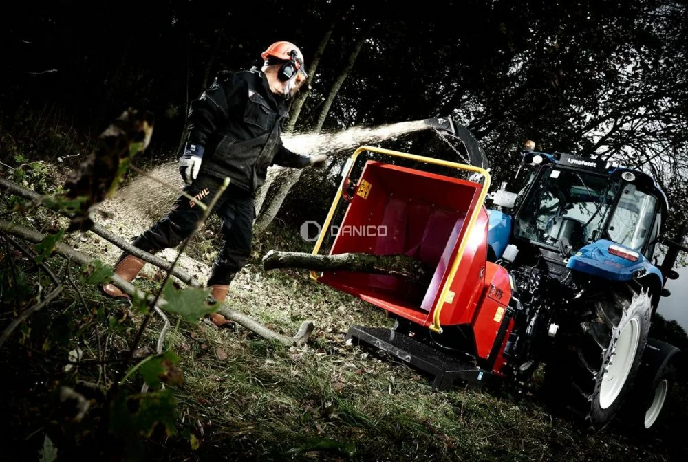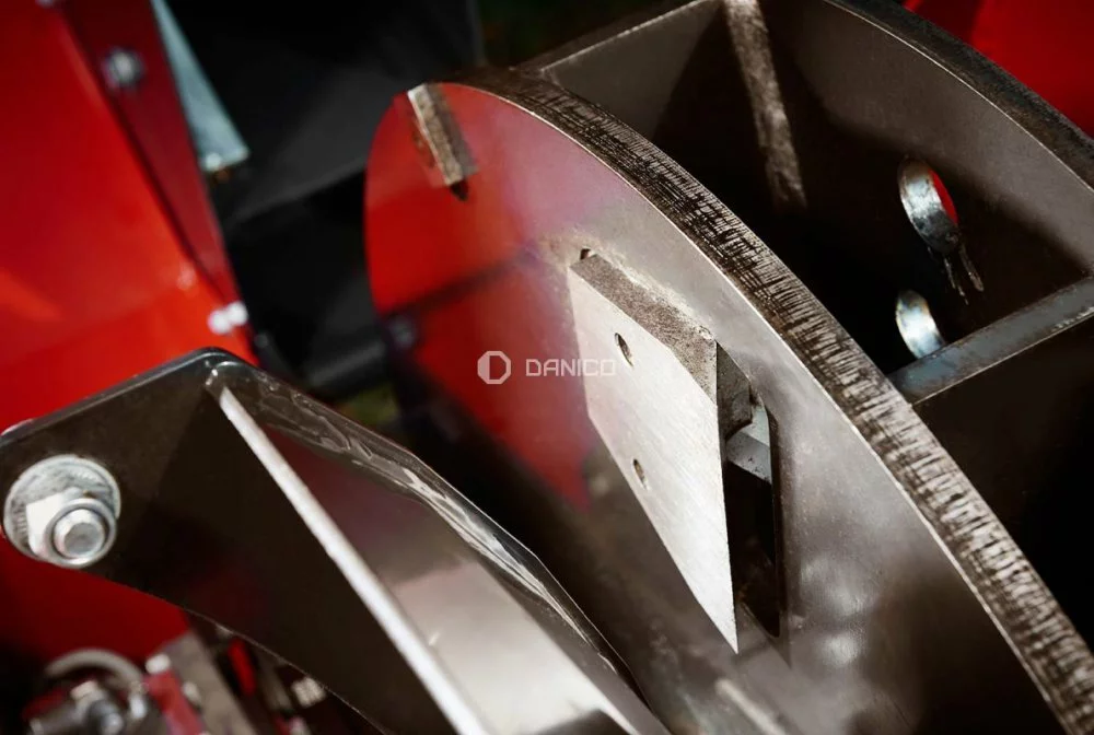 - Вал подачи с гидравлическим приводом с акулой-образными зубцами, гарантирующие особенно мощное втягивания древесины, крутящий выгрузной тоннель, рычаг включения, выключения и реверса, два ножа.