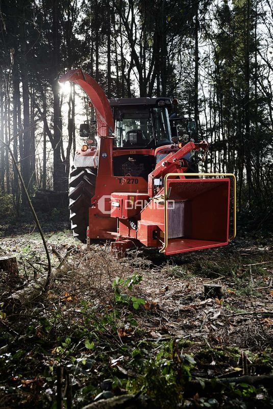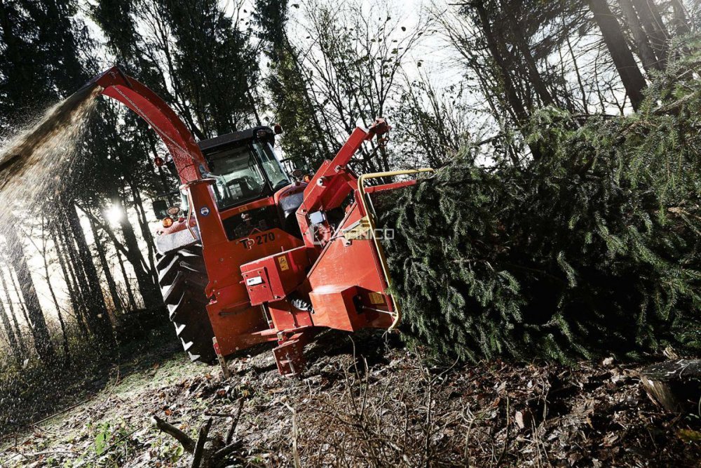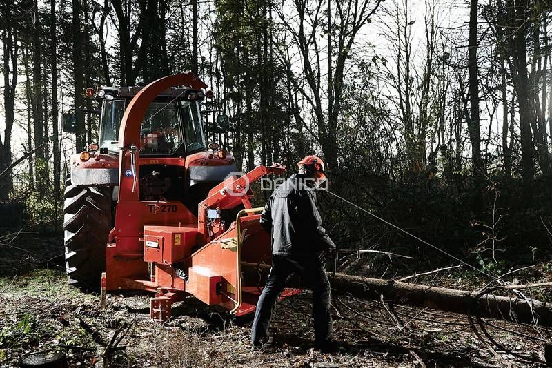 Модель TP 270 - сверхмощный механизм с размещением рукава под углом в 45 °. Мощная дробилки древесины с валами подачи с гидравлическим приводом и дробление под углом в 45 ° для обеспечения высокой производительности и максимальной мощности по втягиванию деревьев даже больших размеров. Управление дробилкой можно осуществлять в ручном режиме, с использованием ЛЕБЕДКИ для серии TP или с помощью крана. Угол расположения рукава относительно направления движения - 45 °, что обеспечивает оптимальные эксплуатационные условия в практически любой ситуации. Агрегат оснащен тремя ножами, подвижным рукавом выдачи готовой продукции, устройством для присоединения прицепа и съемным кожухом корпуса ротора (что помогает уменьшить затраты на обслуживание).
