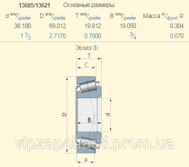 Підшипник 13686/13621 аналог JD10214+JD7441, 822-141C+822-231C