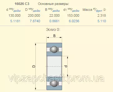 Подшипник шариковый 243097.0 Claas аналог 16026C3​ (C3 ― тепловой зазор)