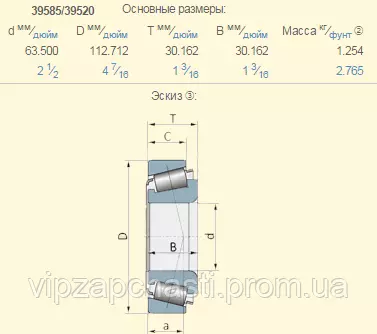 Подшипник конический роликовый 371884A1 Case аналог 39585/39520 / 371884A1+371878A1 / 822-204C+822-052C / 21872505