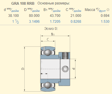 Підшипник 478038R92 CASE аналог ES 208-24 G2, GRA 108 RRB, YET 208-108