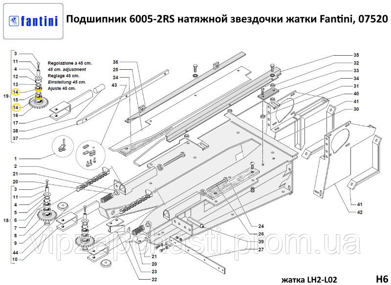 Подшипник 6005-2RS натяжной звездочки кукурузной жатки Fantini, 07520