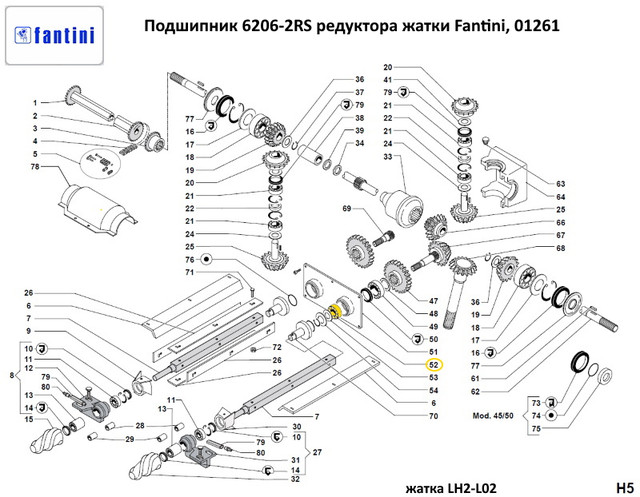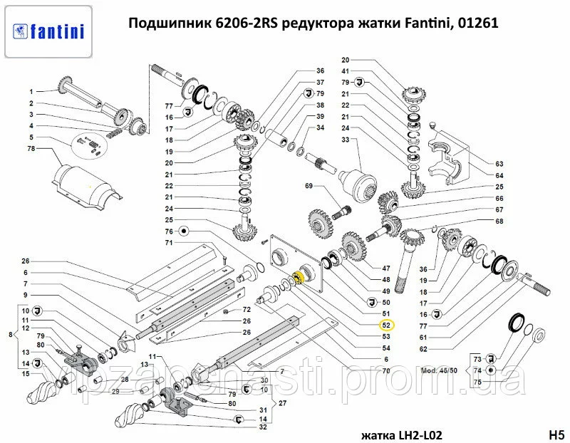 Подшипник 6206-2RS редуктора кукурузной жатки Fantini, 01261