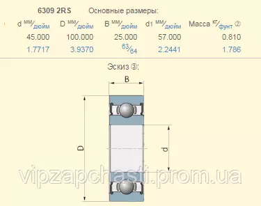 Подшипник 6309-2RS аналоги 215130, D41629300