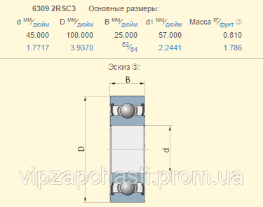 Подшипник 6309-2RSC3 (з тепловим зазором) аналоги 215130,
