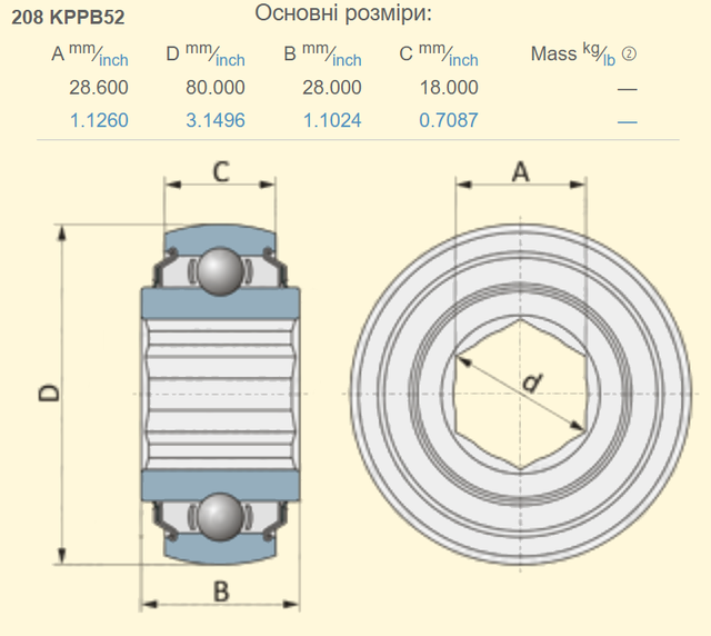 Підшипник 87491115 CASE аналог PN00121, 208KPPB52