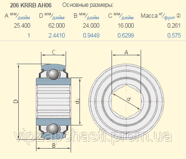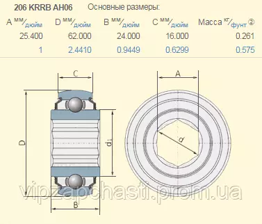 Подшипник шариковый под шестигранник Case 211587C91 аналог 206 KRRB AH06, JD9313, HPS100GP, 206KRRB6, 2AH06-1, 211587C91, 135241