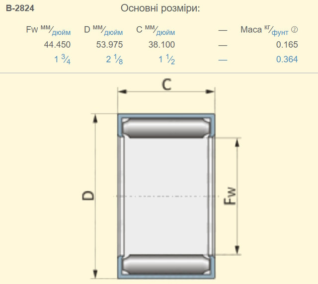 Подшипник игольчатый Case 301533R1 аналоги 301533R91, 87773977, A28310, K19174, O10971AB
