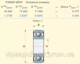 80308803 аналог 1726207-2RS, 207 NPPB, CS