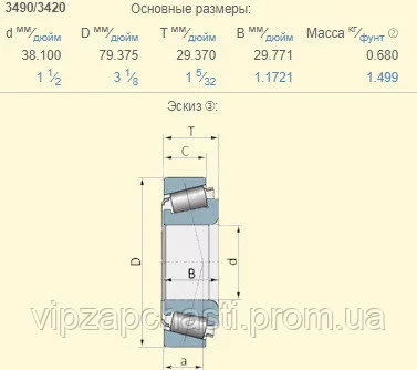 Подшипник Case, 47584782 аналог 3490/3420 Timken