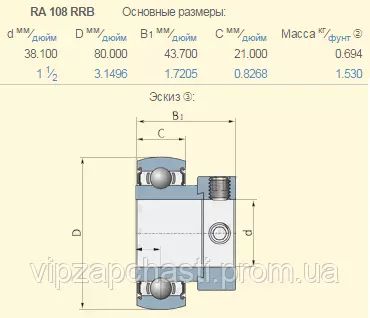 Подшипник Case 664073R92 аналог RA108RRB (аналог 243030, 700050468, 80052443, H664175R92, 52443, 478038R92 JD9202+JD9201, 455111R91, 664175R92, 664073R92, JD9334, 52443, FH208-24 - )