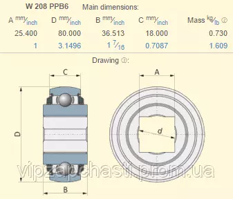 Подшипник сферический с квадратным отверстием Case T15820 аналог W208PPB6
