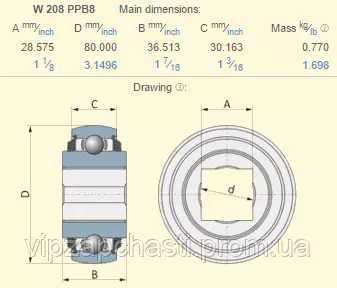 Подшипник сферический с квадратным отверстием Case T25486 аналог W208PPB8​