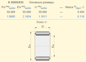 Подшипник роликовый игольчатый сепаратор Claas 072024.0 аналог K50x55x30