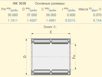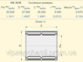 Подшипник Claas 212715.0 аналог HK3038 KOYO