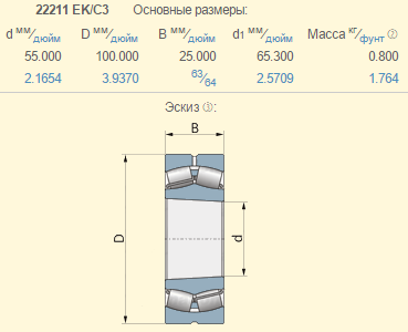 Подшипник роликовый самоцентрирующийся конический Claas 215170.0 аналог 22211 EKC3
