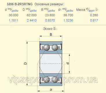 Подшипник шариковый двухрядный Claas 216040.0 аналог 3206-2RS