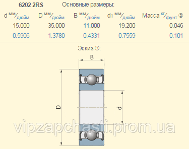 Подшипник шариковый Claas 238069.0 аналог 6202-2Z