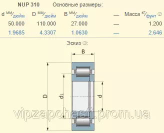 Подшипник роликовый Claas 238282.0 аналог NUP310