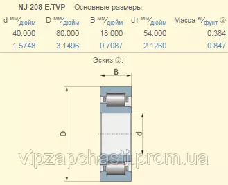 Подшипник Claas 238963.0 аналог NJ208 NSK