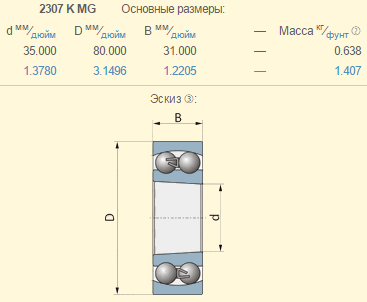 Подшипник шариковый самоцентрирующийся конический Claas 239126.0 аналог 2307KMG