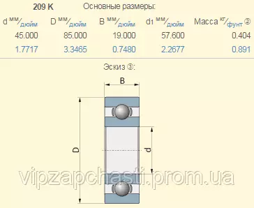 Подшипник шариковый Claas 239421.0 аналог 6209-2RS/C3